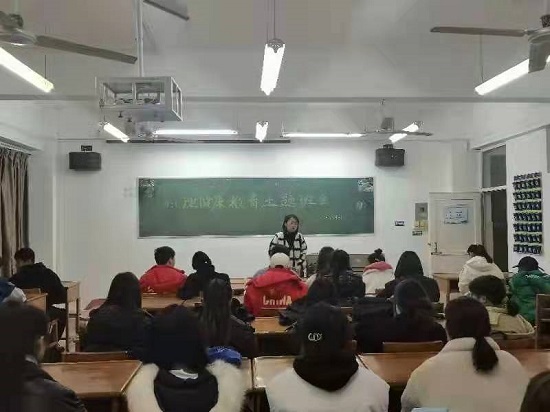 班会上,各班班主任讲到心理健康活动如贫困生心理、大学生恋爱心理、自卑心理、以及青春期心理的成因,增强了学生对不同心理情况的了解,并说到心理健康大多因家庭、情感、思想及心理健康的变化所形成,为此我们应正确看待,承认失败、改正失败、勇于挑战,进行积极的自我暗示,增强自信。在困境中要学会发挥自身优势,悦纳自我,学会自我调试,关心他人,促进共同健康成长,为自己营造良好的学习生活氛围,从而更好的展现自我魅力。