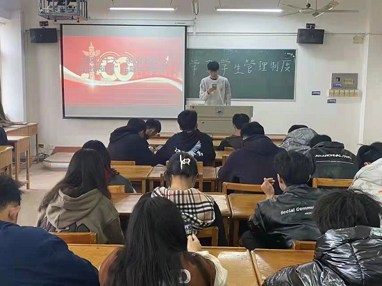 各班依托《九江学院学生手册》,学习了教育部《普通高校学生管理规定》、《九江学院学生管理规定》等学生管理规章制度,重点学习疫情期间学校下发的《九江学院新冠肺炎疫情防控期间学生违纪处分管理规定》。