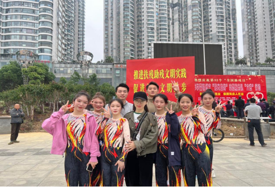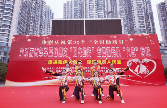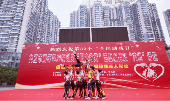 2022年5月15日,九江市市委宣传部、市创文办、市文明办、市团委、市残联等部门联合举办了青年学雷锋创文“阳光助残”志愿服务队“六进”行动,kaiyun官方网站入口健美操队由李娟老师带领八名同学受邀参加本次“阳光助残”活动。