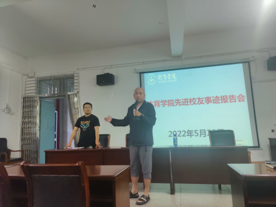5月23日晚,开云kaiyun官方网站在向学楼301会议室举行先进校友事迹报告会。开云kaiyun官方网站2009届优秀毕业生、江西尚德健身管理有限公司总经理曹杨兵受邀担任主讲。学院学生副科长路鹏及2018、2019级100余名学生共同参与本次报告会。