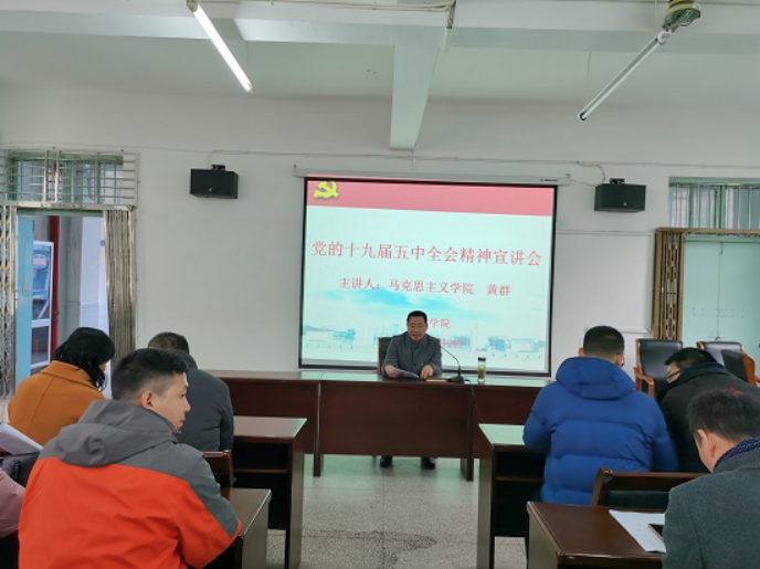 为深刻领会党的十九届五中全会的精神实质和丰富内涵,推动学习活动深入扎实开展,12月2日下午,开云kaiyun官方网站在向学楼301会议室召开党委中心组(扩大)学习会暨党的十九届五中全会精神宣讲会,邀请马克思主义学院黄群副教授作党的十九届五中全会精神宣讲。学院党政班子成员、科室负责人、全体党员和全院教职工参加了宣讲会,宣讲会由院党委书记付和忠主持。