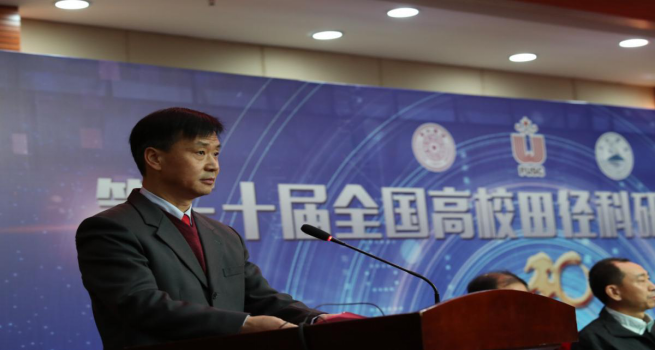 大体协田径分会秘书长、清华大学体育部书记马新东致开幕词,他强调在大学生体育协会的领导下全国高校田径运动科报会已经成功举办了三十届,感谢与会代表多年支持田径分会的科研工作,同时也感谢九江学院给与此次科报会的大力支持,使得每年一届的科报会在三十年的发展历程中从未间断过。