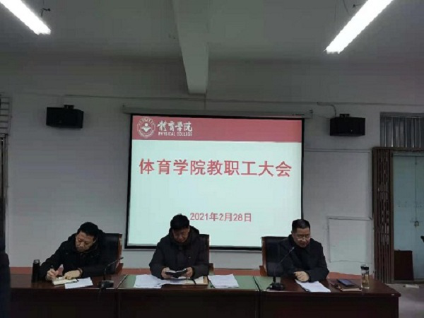 院长段宝斌在会上传达了学校新学期领导干部会议精神,布置了新学期学院中心工作,要求各科室和全体教师围绕教学科研、运动竞赛、群体活动把工作做实、做细、做好。强调要做好开学第一课的各项准备工作,继续保持良好的教学工作态度,进一步提高教学水平。
