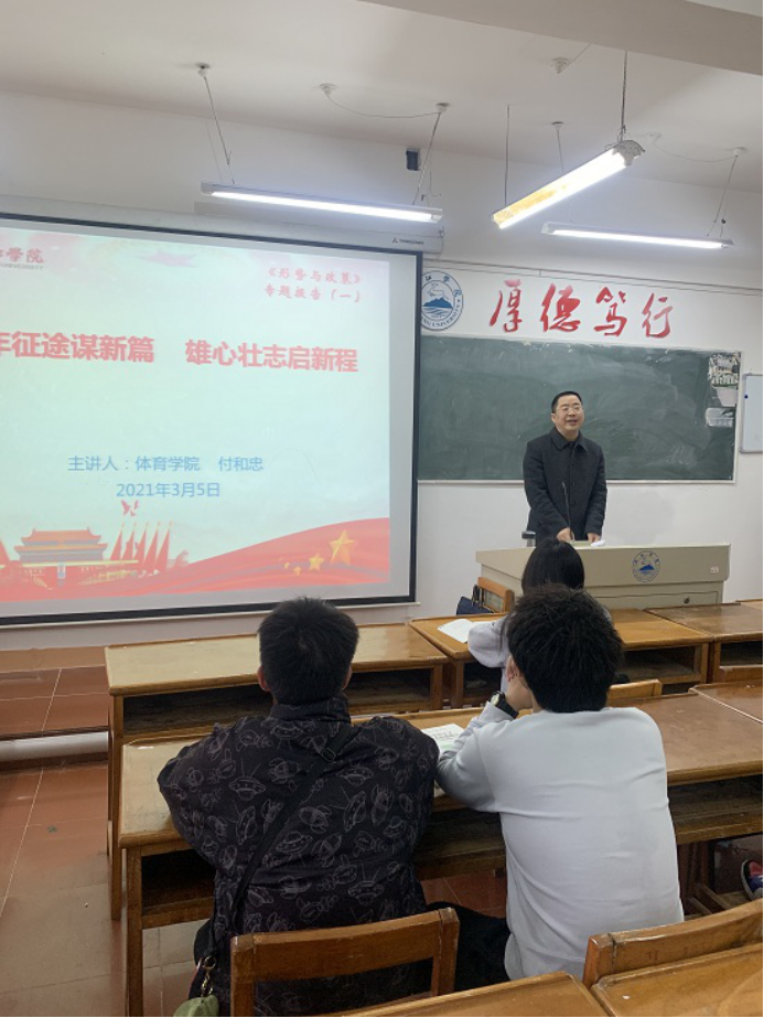 3月5日上午,开云kaiyun官方网站院长段宝斌、党委书记付和忠在竞知楼多媒体教室以饱满的热情为体育2020级学生上了一堂生动的开学思政第一课。