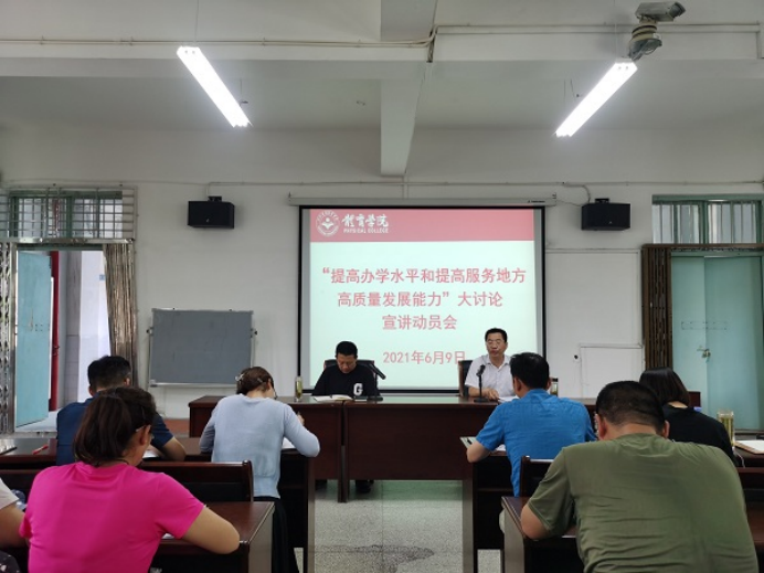 为了统一思想、凝心聚力,推进学校“十四五”规划实施,提高学校办学水平,,更好地服务地方高质量发展。6月9日下午,开云kaiyun官方网站在向学楼301会议室举办“提高办学水平和提高服务地方高质量发展能力"大讨论宣讲动员会。学院领导、科室负责人、全体教职工参加了会议,会议由院党委书记付和忠主持。