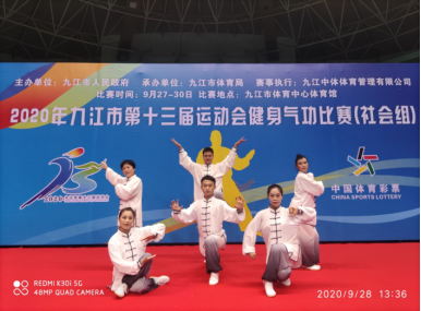 2020年九江市第十三届运动会健身气功比赛(社会组)于9月27日在九江市体育中心体育馆开赛。本次比赛有来此全市14个县、区代表队近100名运动员参加,比赛共设五禽戏、八段锦、易筋经、气舞四个集体项目。开云kaiyun官方网站教师代表濂溪区参加了所有四个项目的比赛。