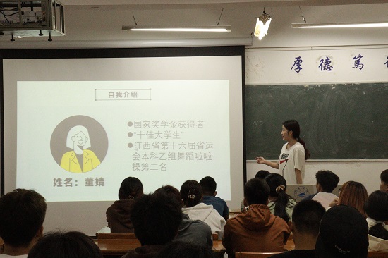 在报告会中,省运会专业竞技成绩突出的钱海宁讲述了自己在训练和比赛中突破自我的艰辛过程与感悟;2022年度“叔子爱莲奖学金”获得者朱白水结合自身的人生经历,讲述了持之以恒的重要性,鼓励同学们要把握每一次机会,在点滴中成长;荣获2022年度校“十佳大学生”董婧袒露了她对学习、职业、处事等方面的经验,引导新生找准方向、砥砺前行;一等奖学金代表陈欢就自身的学习目标、如何保持良好心态和自我坚持等方面提醒同学们一定要端正学习态度,学有所获、行有所成。