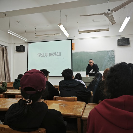 活动过程中,各班班主任老师带领本班同学们学习《学生手册》,详细地讲解九江学院学生管理办法各项制度和规定,明确了学生的权利和义务,也耐心地就学生们较为关切的关于奖惩制度、学籍预警、试读、退学等方面问题进行了答疑解惑。