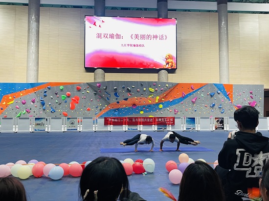随后,内容丰富、精彩纷呈的文艺表演正式开始。首先由健美操校队带来的一支街舞《深藏blue》将场上的气氛点燃。接下来的歌曲表演、瑜伽技巧展示、口琴表演、花样跳绳、现代舞、中国武术、舞狮表演等诸多精彩的节目引得观众阵阵欢呼声,同学们用跳动的音符、曼妙的身姿、精湛的专业技巧唱响了青春的活力。晚会中还设有紧张刺激的游戏互动及抽奖环节,送花、撒糖等等惊喜不断。最后,同学们齐唱《我和我的祖国》,在青春激昂的氛围中结束了本次文艺汇演。