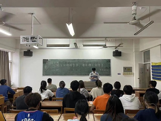 活动最后,各班团支书发言讨论并感悟五四精神。同学们纷纷上台,满腔热血溢于言表。他们感慨道,五千年悠悠岁月,一百载风雨兼程。回望历史,是那时的一代代青年勇担使命,顽强拼搏,书写了新的辉煌篇章。而现在,作为一名新时代的当代大学生,要弘扬五四朝气,继续学习党的二十大精神,以吾辈之青春捍卫盛世之中华。