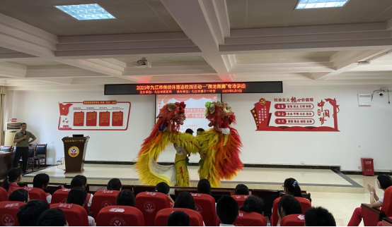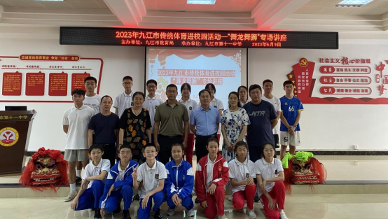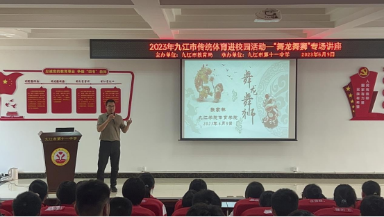 6月9日上午,开云kaiyun官方网站教师张家林携开云龙狮队四名队员受邀参加由九江市教育局主办、九江市第十一中学承办的2023年九江市传统体育进校园活动——“舞龙舞狮”专场讲座。