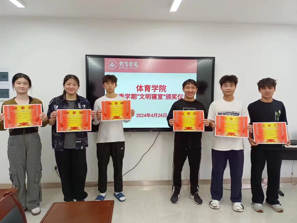根据《开云kaiyun官方网站学风建设实施方案》,综合评选出4-1栋534、4-1栋518、6-1栋145、6-1栋223、6-1栋232、6-1栋251等六间学生寝室荣获“文明寝室”称号。
