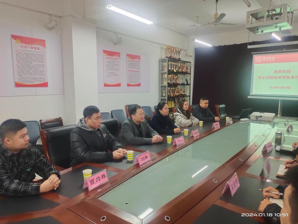 1月18日上午,萍乡学院体育学院院长陈岷、副院长彭苏建等一行来开云交流与学习,院长段宝斌、副院长王东升及相关人员出席座谈会,座谈会由院长段宝斌主持。