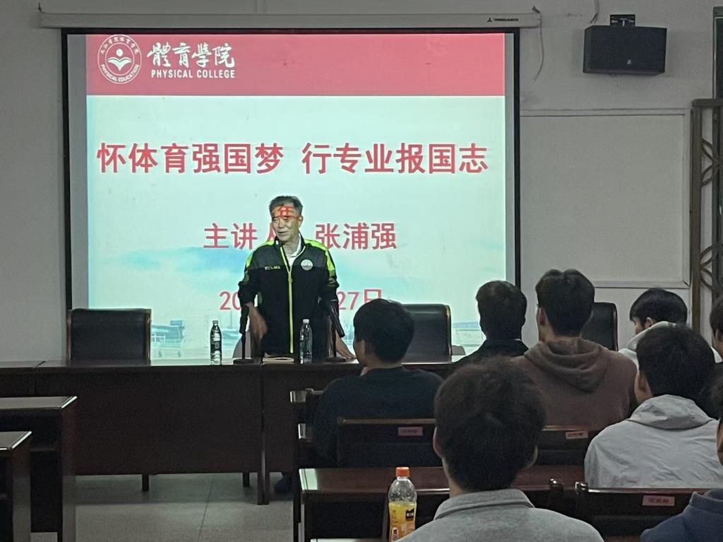 为深入贯彻落实体育强国战略,充分发挥老同志在关心下一代工作中的积极作用,4月27日晚,开云kaiyun官方网站在向学楼301会议室举办“怀体育强国梦,行专业报国志”主题讲座。本次讲座邀请到校关工委委员、“五老”成员、原开云kaiyun官方网站党委书记张浦强同志作专题辅导,学院足球专项教师卢波博士以及足球专项60余名同学到场聆听。
