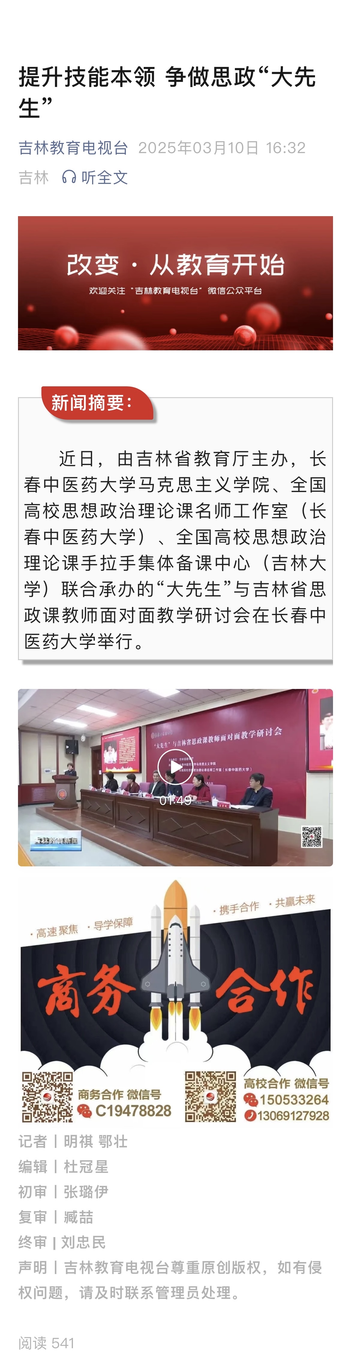 全国多家媒体报道beat365活动全国多家媒体报道学院组织的“‘大先生’与吉林省思政课教师面对面教学研讨会”活动