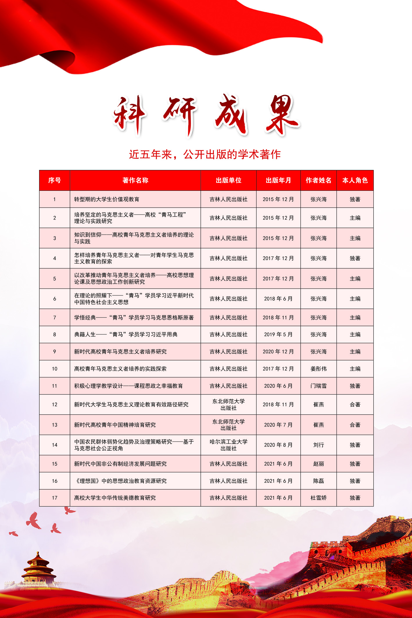 近五年来学院教师公开出版的学术著作