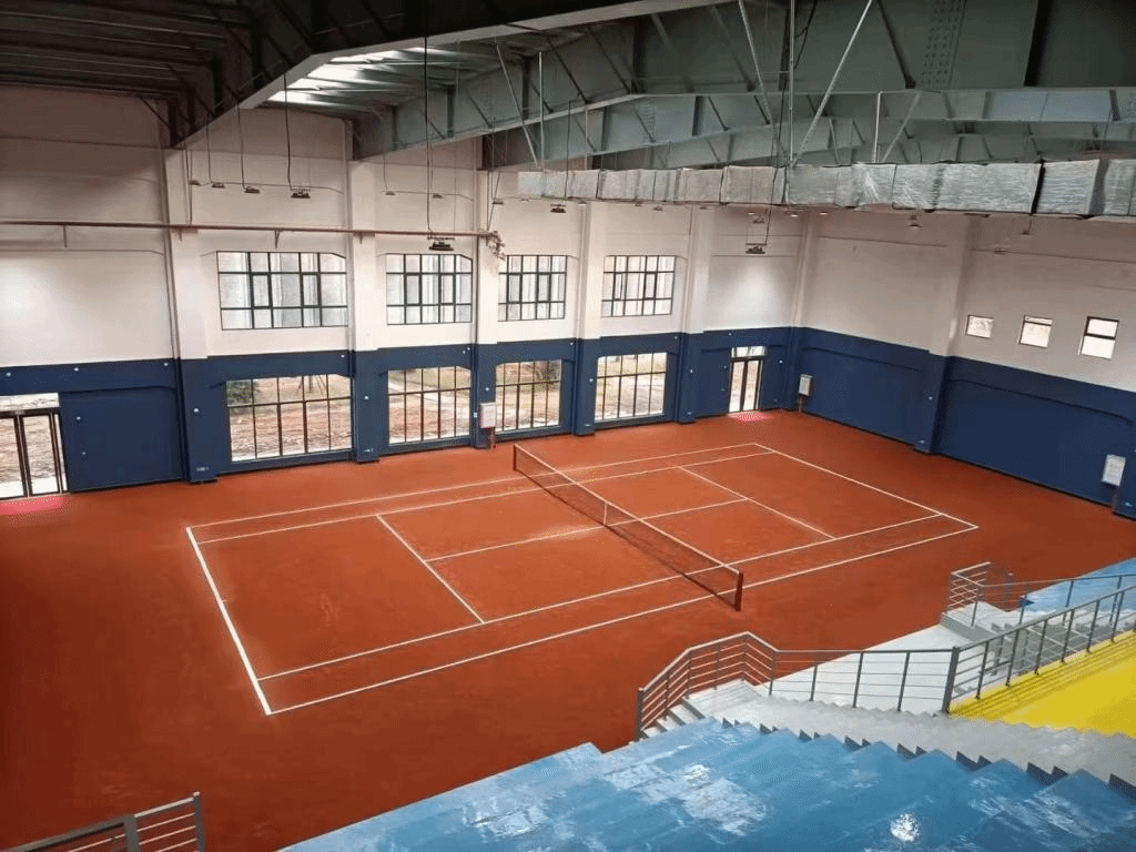 网球馆改建于2022年,馆内有1片红土场地和2片丙烯酸场地,改建后的场地主要用于教学与训练。