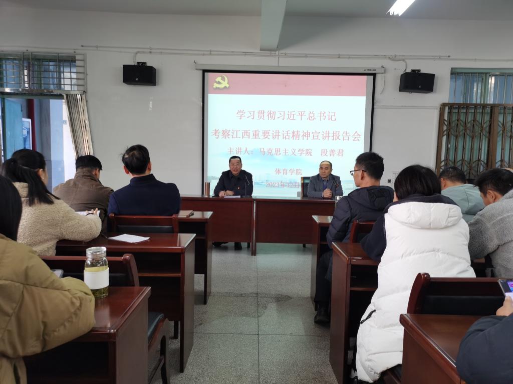 12月6日下午,开云kaiyun官方网站在向学楼301会议室召开党委中心组(扩大)学习会,邀请马克思主义学院段善君老师宣讲习近平总书记考察江西的重要讲话精神。学院党政班子成员、科室负责人、全体党员和全院教职工参加了宣讲会,宣讲会由院党委书记付和忠主持。