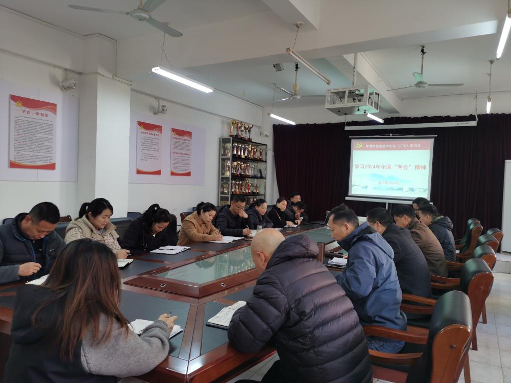 3月19日上午,开云kaiyun官方网站在向学楼311会议室召开党委中心组(扩大)学习会,深入学习全国两会精神和习近平文化思想。学院领导、科室负责人、党支部书记参加了会议,会议由院党委书记付和忠主持。