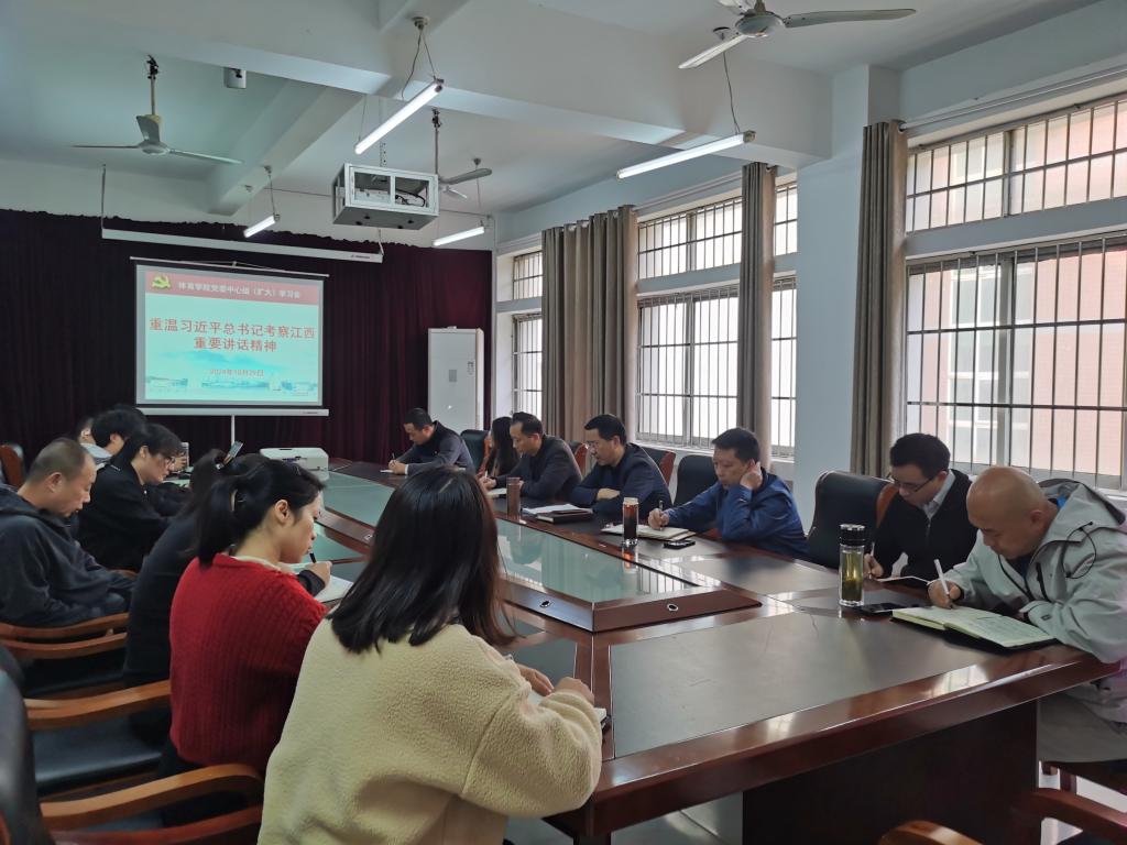 10月29日上午,开云kaiyun官方网站召开党委中心组(扩大)学习会,重温习近平总书记考察江西重要讲话精神,深入学习领会习近平总书记关于意识形态工作的重要论述。学院领导、科室负责人、教研室主任、党支部书记参加了会议,会议由院党委书记付和忠主持。