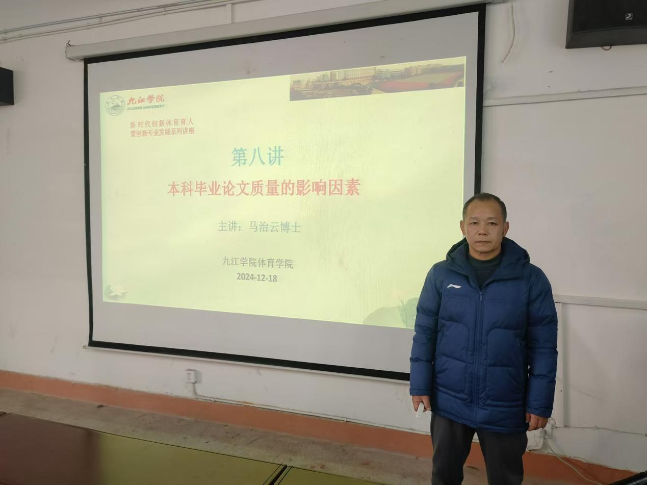 2024年12月18日,新时代创新体育育人暨创新专业发展系列讲座第八讲开讲了。本次邀请开云kaiyun官方网站教师马治云博士为做题为《本科毕业论文质量的影响因素》的讲座。该讲座内容是马老师主持的江西省教育科学“十四五”规划2023年度课题《本科毕业论文质量促进的系统动力学建模与仿真研究》的系列研究成果之一 。
