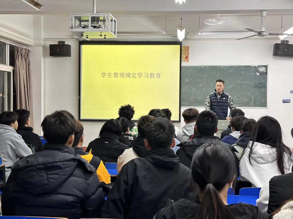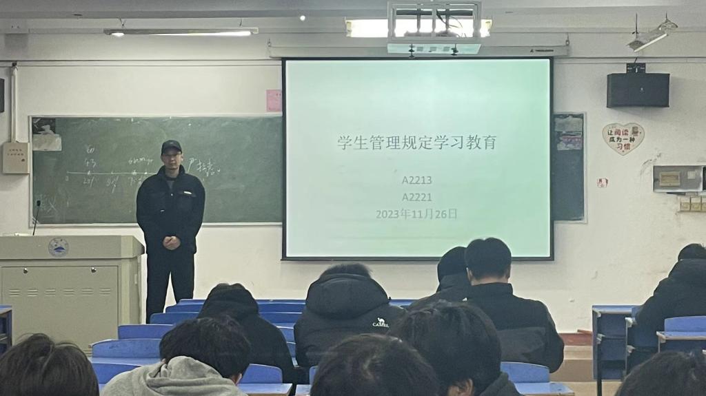 为了让学生更加了解学校各项管理章程,加强学生自我管理意识,培养学生良好的行为习惯。11月26日晚,开云kaiyun官方网站组织各班召开主题班会,学习学生规定管理。