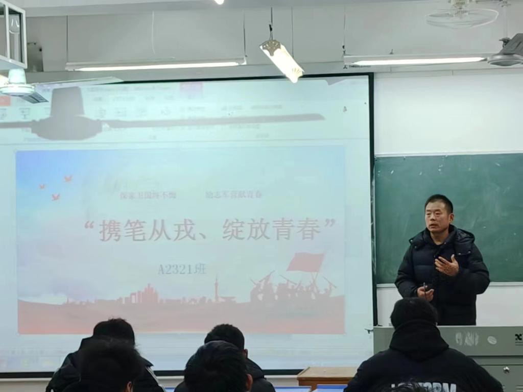 为了积极响应国家号召,进一步激发毕业生参军报国热情。12月17日,开云kaiyun官方网站组织各班开展“携笔从戎,绽放青春”主题班会。