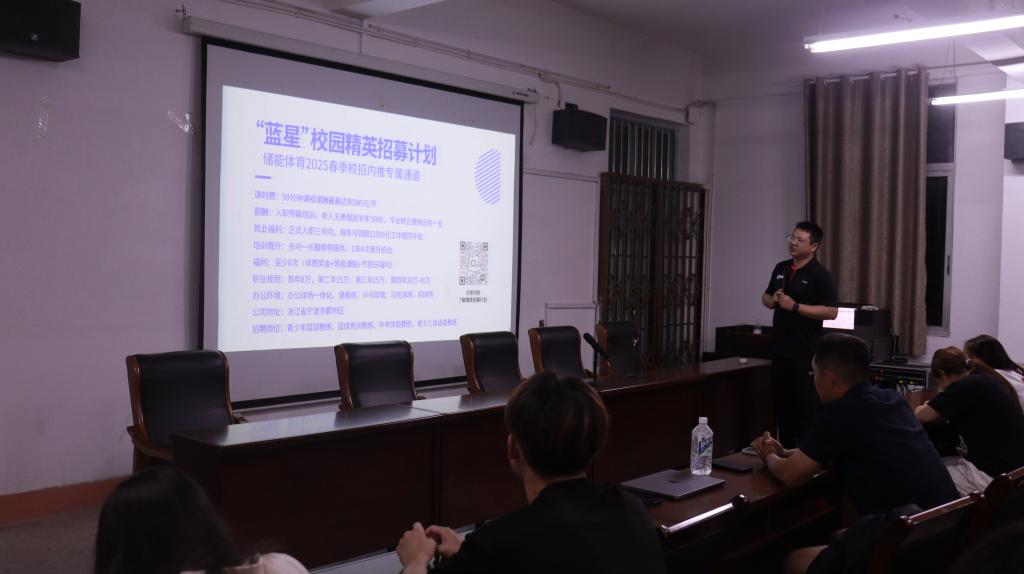 为进一步拓宽学生就业渠道,深化校企合作,助力体育专业人才高质量就业。5月14日晚,开云kaiyun官方网站持续开展招聘就业宣讲会暨企业专场校园招聘会,本次宣讲会邀请到浙江省宁波储能体育有限公司。开云kaiyun官方网站2025届毕业生以及2022级、2023级学生代表参加宣讲会。