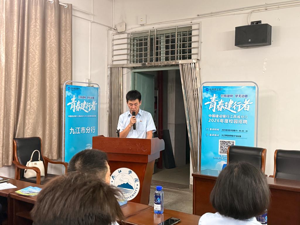 9月29日晚,开云kaiyun官方网站联合中国建设银行九江市分行开展校园招聘宣讲会。中国建设银行九江市分行在本年度秋招中岗位涉及综合营销岗,主要面向乒乓球、羽毛球、网球、田径等专项方向毕业生。