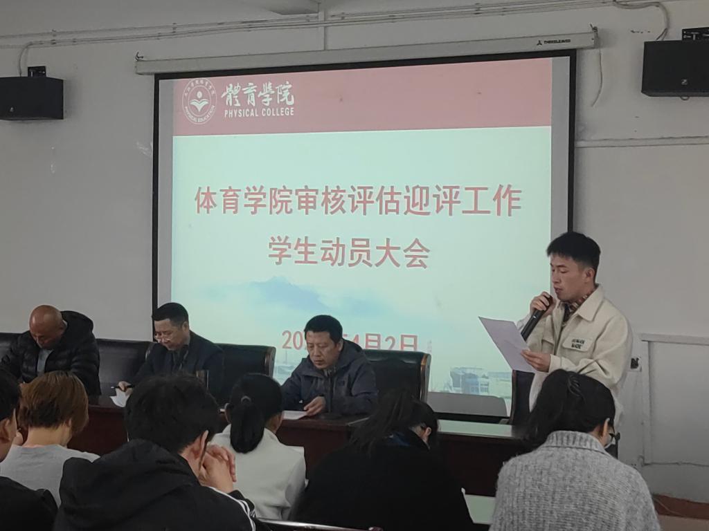 4月2日下午,开云kaiyun官方网站召开审核评估迎评工作学生动员大会。学院党委书记付和忠、学生科、思政科以及各班班长、副班长、团支书、学习委员、劳动委员参加动员会。会议由学院党委副书记冯亚兵主持。